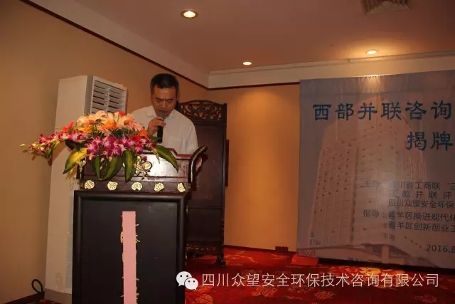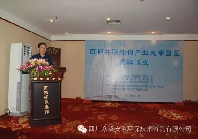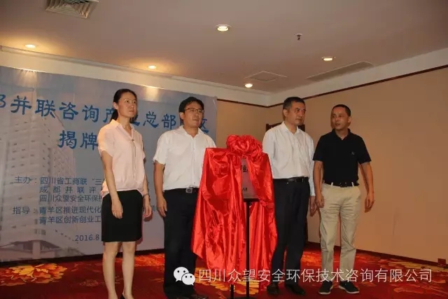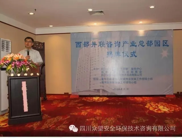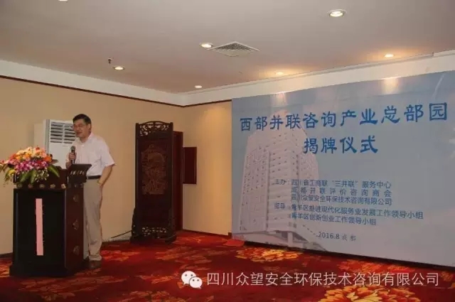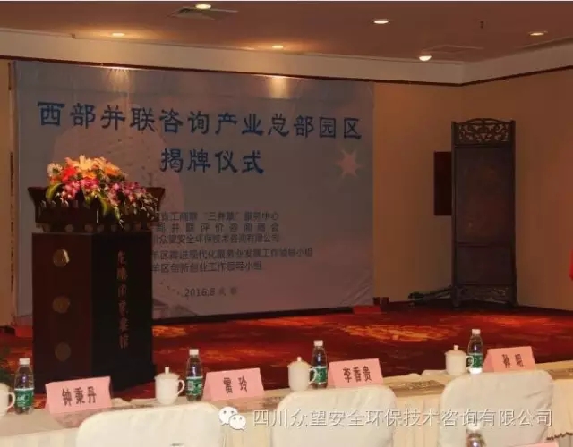 2016年8月26日上午,由四川眾望安全環保技術咨詢有限公司牽頭打造的“西部并聯咨詢產業總部園區”揭牌儀式在成都隆重舉行,省、市工商聯和青羊區政府及多家單位領導共150余人到場祝賀,共同見證全國首個并聯咨詢園區的誕生。