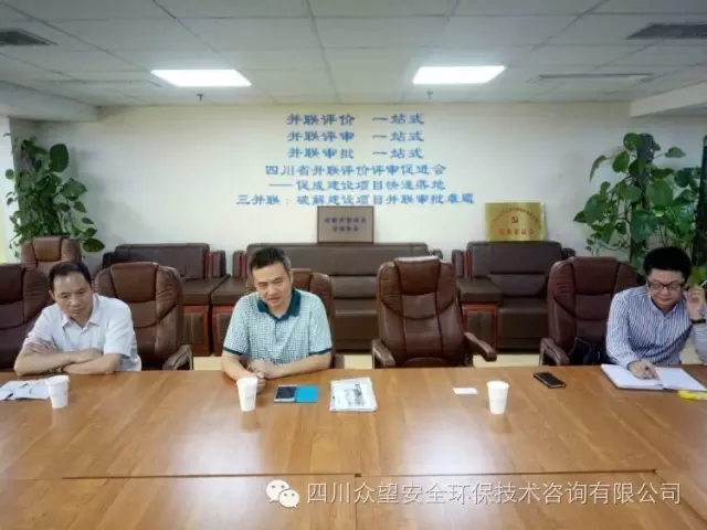 2016年9月7日,四川省輕工業設計院院長黃明剛,副院長陳勇,總工程師陳小平一行三人到四川省眾望安全環保技術咨詢有限公司參觀考察,隨后與四川眾望公司總經理潘祖高,副總經理朱子剛、張宏、李圣興等親切交談,共商深度合作事宜。