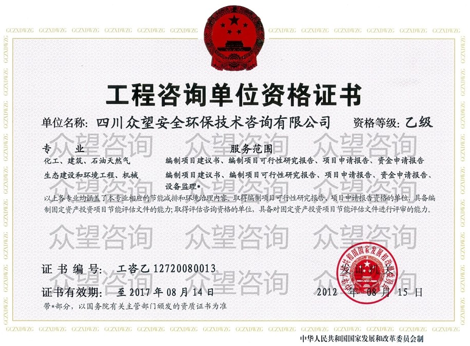本公司于2012年取得工程咨詢乙級資質,現有注冊咨詢工程師23人,可以從事化工、建筑、機械、石油天然氣、生態建設和環境工程5個行業的節能評估、可行性研究報告、項目申請報告、資金申請報告編制工作。近兩年,