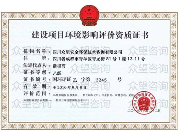 四川眾望安全環保技術咨詢有限公司 電 話:028-86258172/86258173/028-86258174/86258095 傳 真:028-86258093/86258552