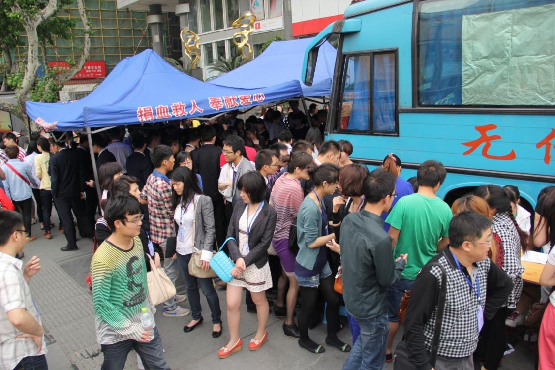 (近百余名眾望員工在成都天府廣場參加4.20玉樹地震無償獻血)